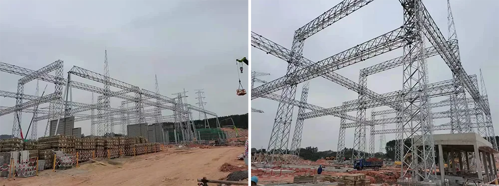Они полностью отличаются от опор ЛЭП, которые используются только для поддержки воздушных линий электропередачи. Опоры электропередач служат только опорами для передачи электроэнергии высокого напряжения из точки А в точку Б без преобразования напряжения или управления мощностью. Напротив, стальные конструкции подстанций представляют собой комплексные объекты, объединяющие функции преобразования напряжения, управления мощностью и распределения энергии, оснащенные основными компонентами, такими как главные трансформаторы, коммутационное оборудование и устройства защиты. Они являются незаменимыми обрабатывающими и диспетчерскими центрами в процессе передачи электроэнергии. Эти двое работают вместе, чтобы сформировать полную сеть передачи электроэнергии.